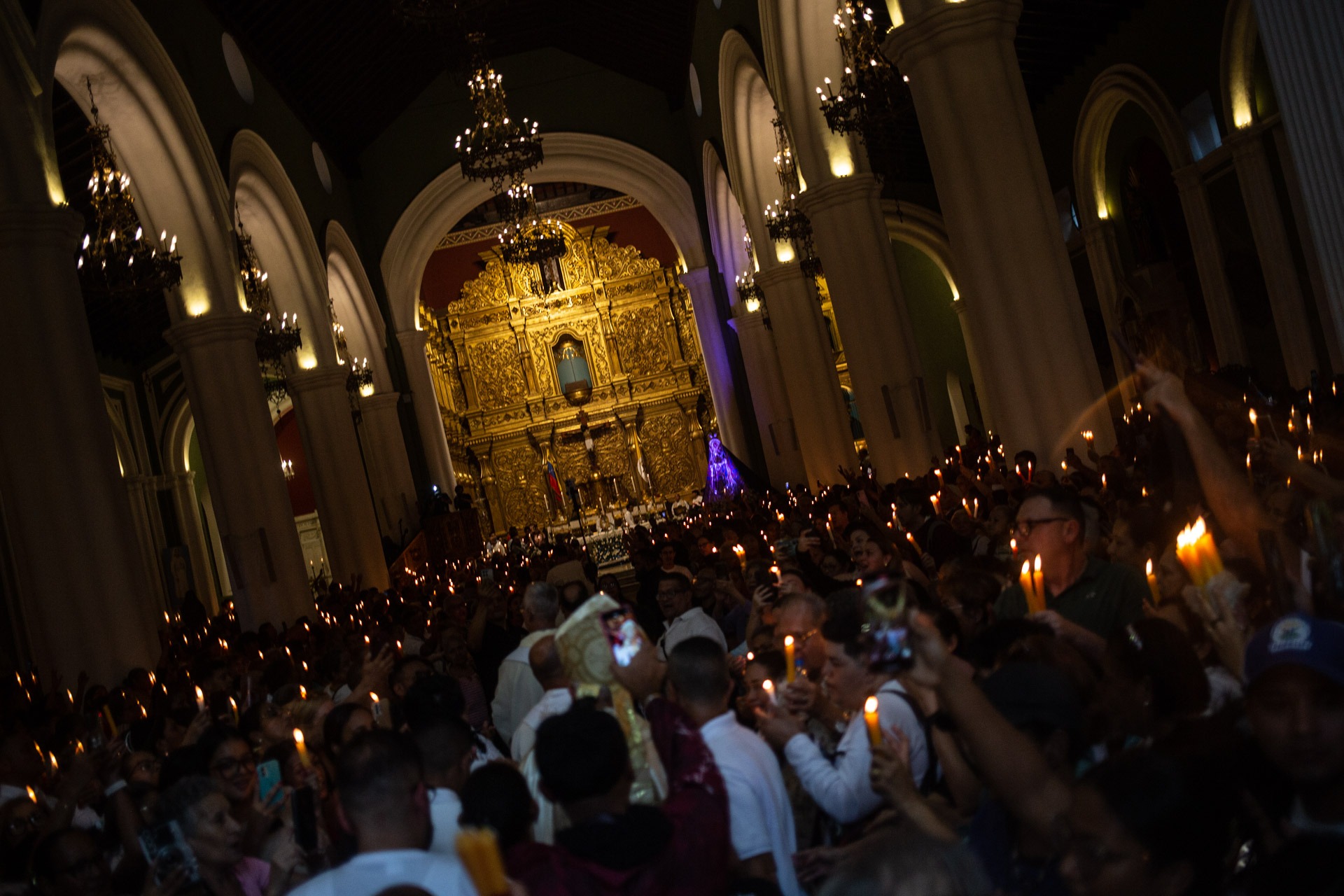 A medida que el Cardenal avanzaba por el pasillo central, en pocos segundos las velas de los feligreses se encendieron una tras otras en un hilo de luz colectivo que se multiplicó dentro del templo como una constelación divina.