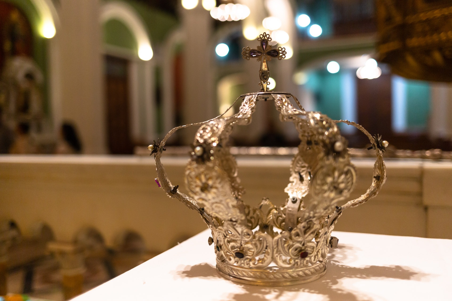 La líder de la cofradía, Zuleima Pimentel, es la responsable de resguardar las joyas y supervisar que cada elemento sea agregado con el esmero debido. El proceso siguió con la coronación de la Virgen, a la santa imagen amoldaron sobre su cabeza una corona de plata con gemas preciosas que recién fue restaurada.