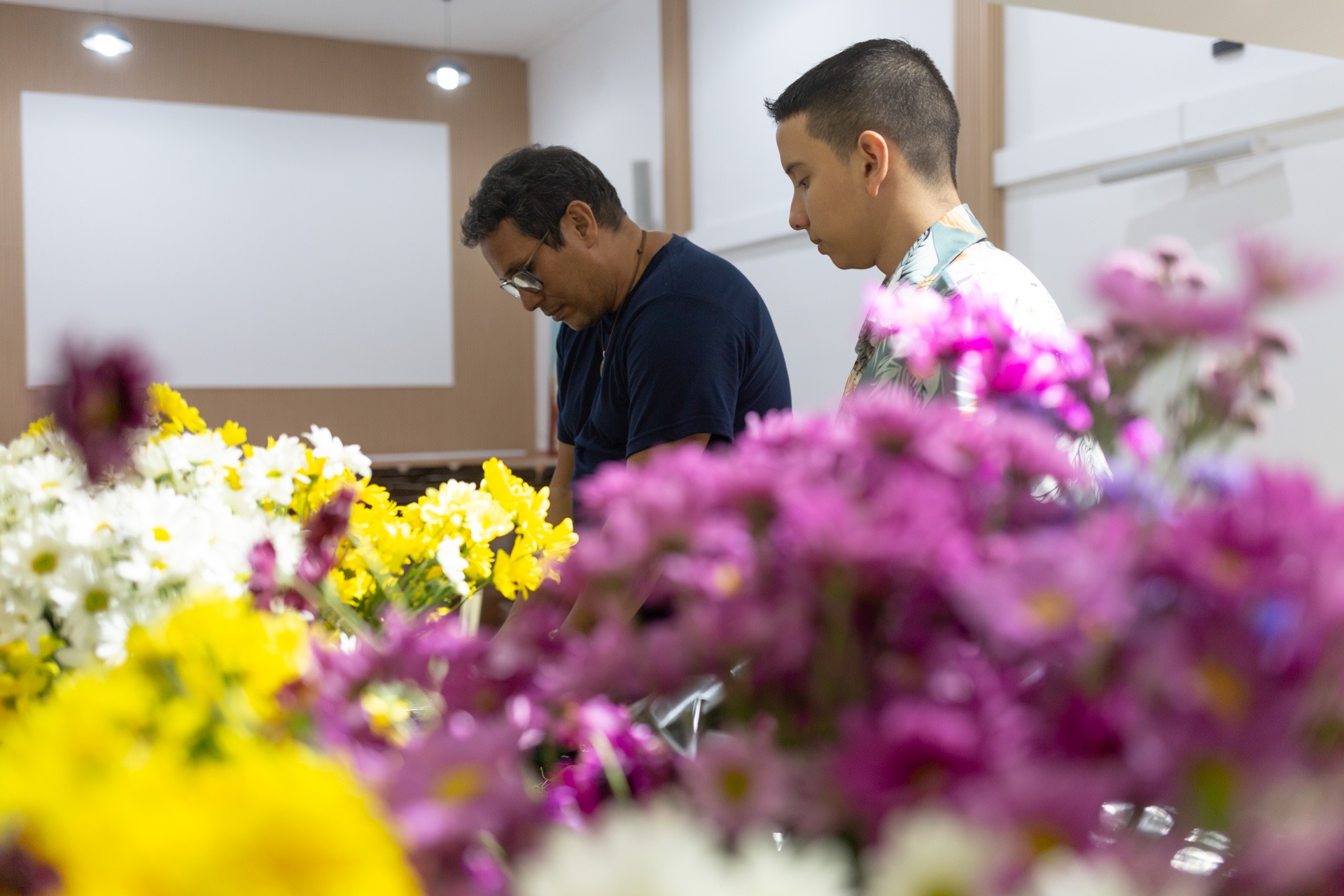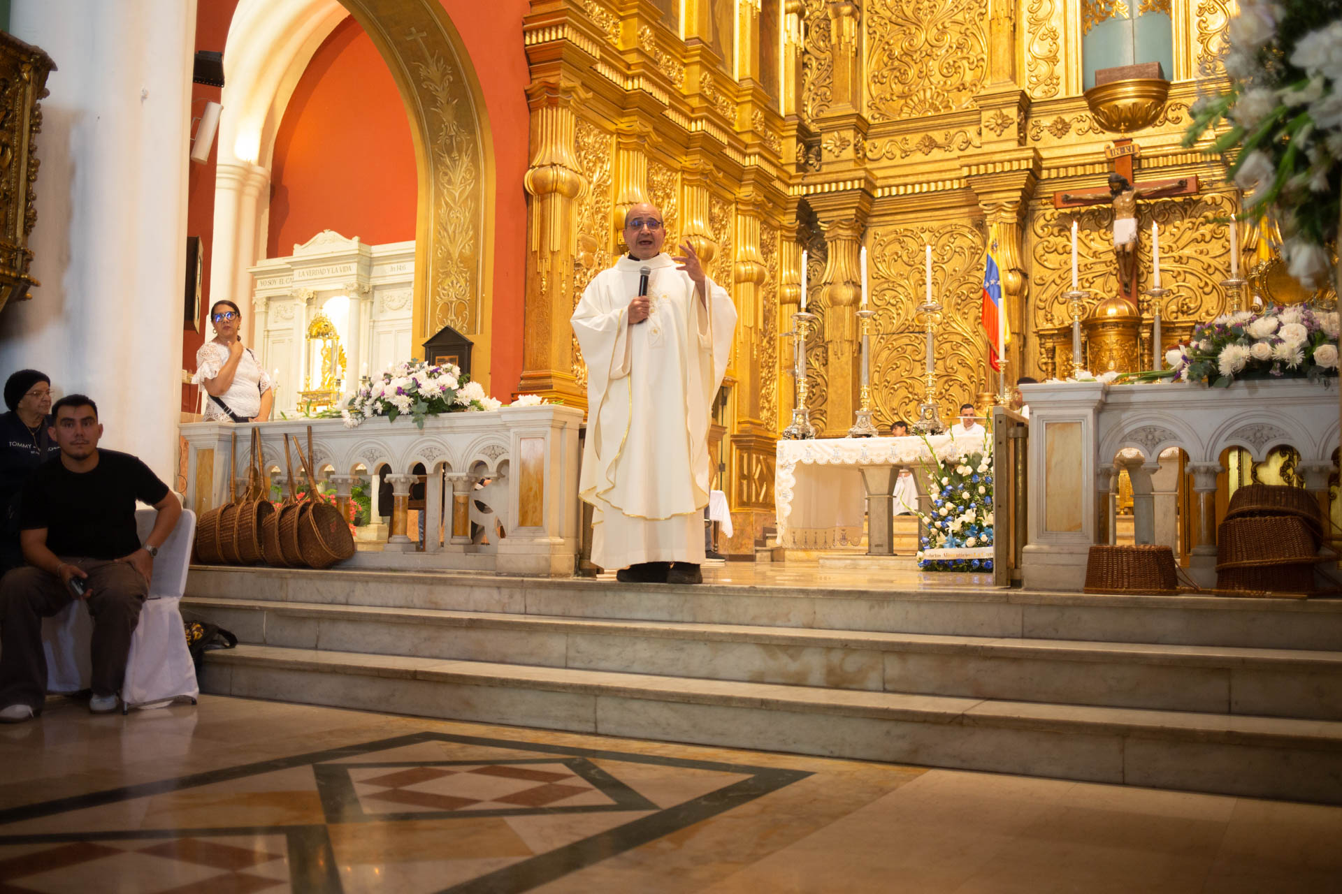 Manuel Vicente Figueroa se encargó de los arreglos florales. Rosas blancas, lirios, gladiolas, margaritas y nardos adornaron la carroza a los pies de la Virgen e impregnaron con su aroma el pasillo central del templo.